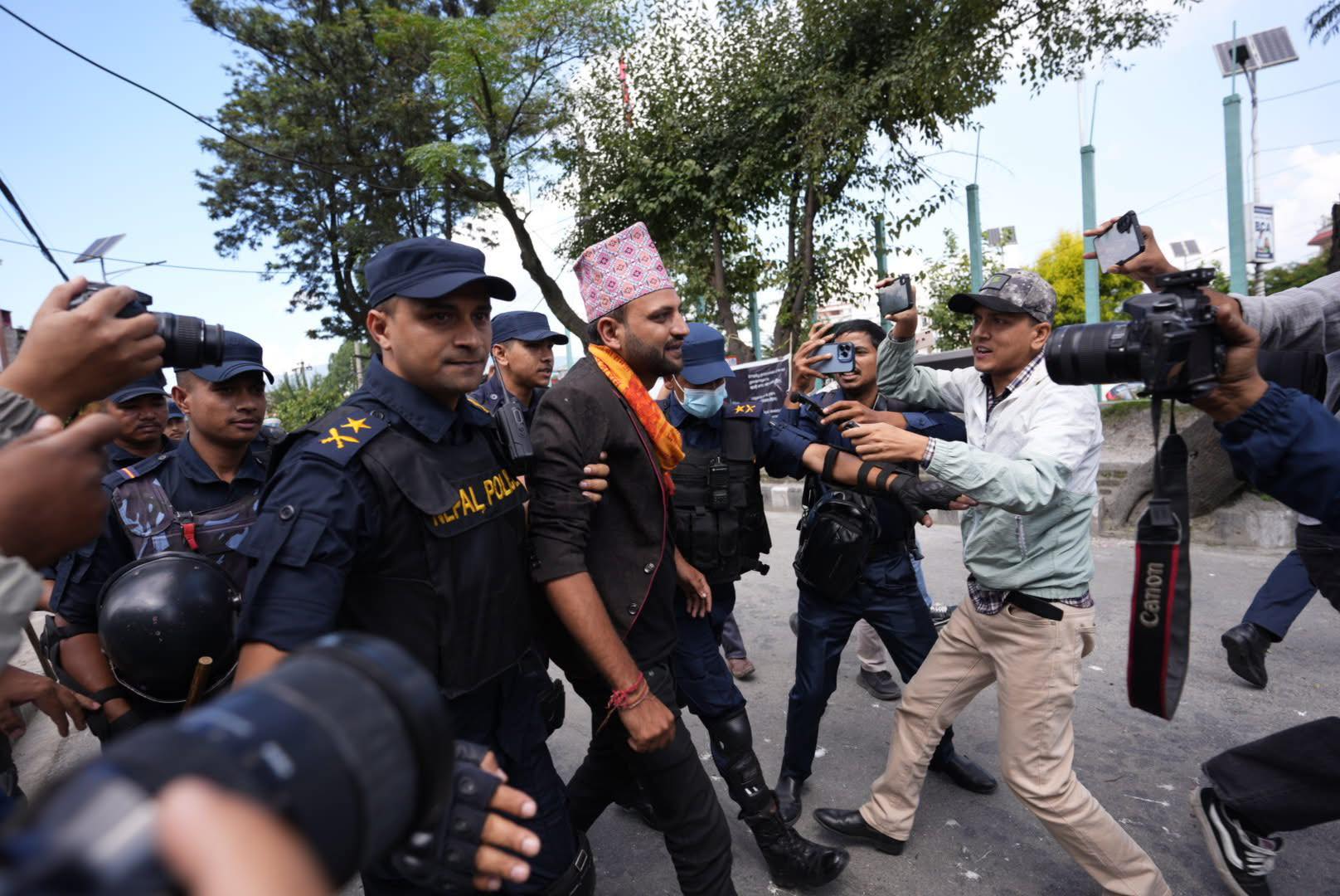 काठमाडौं : काठमाडौँको माइतीघर मण्डलामा शान्तिपूर्ण प्रदर्शनको तयारी गरिरहेका डा. निकोलस भुसाललाई प्रहरीले पक्राउ गरेको छ । भुसालसँगै सञ्जीव दाहाल र अर्का एक व्यक्तिसहित तीन जनालाई प्रहरीले नियन्त्रणमा लिएको हो ।