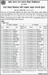 विश्वविद्यालयले एनाटोमी, फिजियोलोजी, प्याथोलोजी, माइक्रोबायोलोजी, बायोकेमेस्ट्री, कम्युनिटी मेडिसिन, फरेन्सिक मेडिसिन, फार्माकोलोजी, नर्सिङ, इन्टरनल मेडिसिन, ईएनटी, अब्स एण्ड गाईनो, जनरल सर्जरी, एनेस्थेसियोलोजी, डर्माटोलोजी, डेन्टल सर्जरी, पेडियाट्रिक्स, रेडियोलोजी, साइक्याट्री, अर्थोपेडिक्स, अप्थाल्मोलोजी र मेडिकल एजुकेशनलगायत विभिन्न विषयमा पद खुलाएको छ।