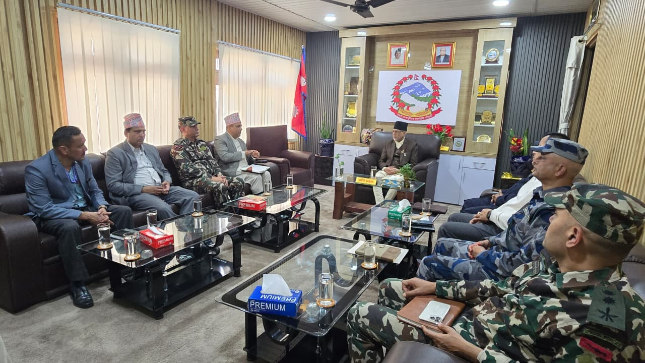 शुपक्रबार प्रदेश प्रमुख निवासमा प्रदेशका प्रमुख सचिव, नेपाली सेना, नेपाल प्रहरी, सशस्त्र प्रहरी बल र राष्ट्रिय अनुसन्धान विभागका प्रदेशका प्रमुखहरूले सुरक्षा अवस्थाबारे जानकारी गराएका थिए । उक्त भेटमा आन्तरिक मामिला तथा कानुन मन्त्रालयका सचिव तथा कैलालीका प्रमुख जिल्ला अधिकारीको पनि उपस्थिति रहेको थियो ।